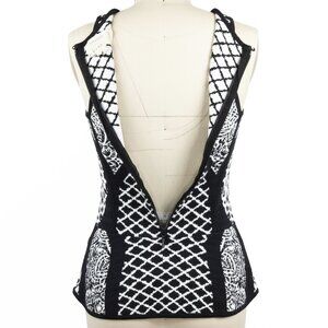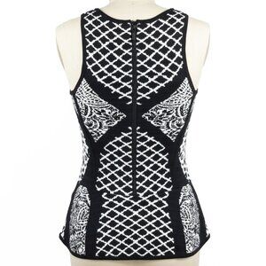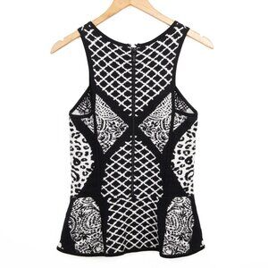 Nicole Miller Artelier Black & White Peplum Double Knit Tank Top Small