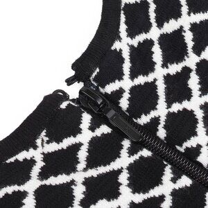 Bold meets flattering in this Nicole Miller Artelier knit peplum tank — a statement piece that’s equal parts edgy and elegant. Featuring a sculptural black-and-white geometric pattern and a curve-enhancing peplum silhouette, this top is designed to turn heads. The stretch knit fabric hugs in all the right places, while the exposed back zipper adds a sleek, modern touch. Perfect for dressing up denim or pairing with a pencil skirt for a night out. A rare gem you’ll wear on repeat!