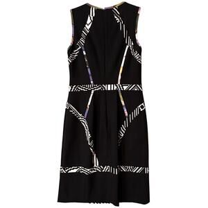 Nicole Miller Artelier Collection Geo Trim Pleated Flounce Dress Size 4 Silk