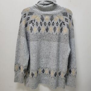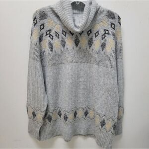 Nicole Miller Artelier Fair Isle Plus Size 1X Turtleneck Sweater NWT Grey