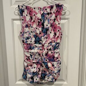 Nicole Miller Artelier Floral Watercolor Linen Rushed Long Top Form Fitted