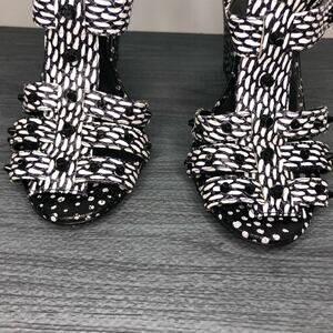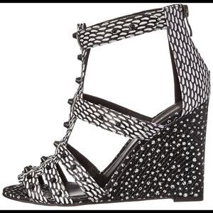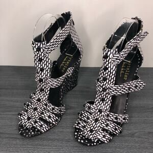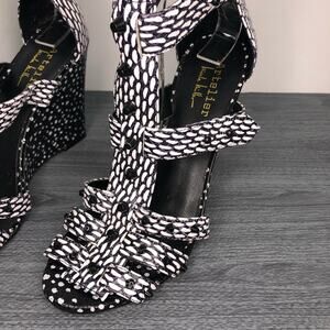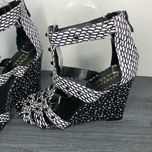 Nicole Miller Artelier Panama black & white wedge sandals in a women’s size 6.5. Beautiful black & white pattern with studded embellishments.
