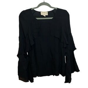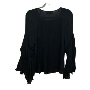 Nicole Miller Atelier Black Silk Bell Sleeve Blouse