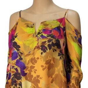 Nicole Miller Artelier Silk Floral Cold Shoulder Deep V Neck Top Size Small