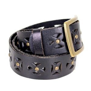 DARK BROWN GENUINE LEATHER CUT OUT STUDDED CASUAL BELT