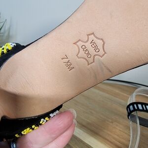 Nicole Miller Beaded Heels Multi Color Seed Bead Black Leather Stiletto Size 7.5