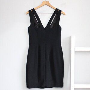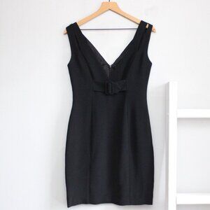 Nicole Miller Black Front Buckle Cross Straps Tight Cocktail Mini Dress Size 8