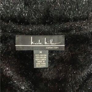 Nicole Miller Black Fuzzy Sequin V Neck Sweater