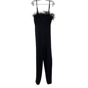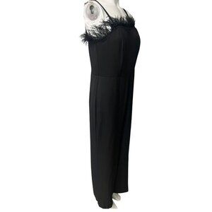 Nicole Miller Black Ostrich Feather Trim Jumpsuit Size 12