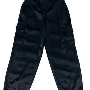 Nicole Miller Black Silky Wide Leg Cargo Pants Size Small