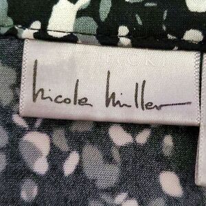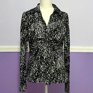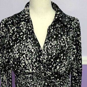 Nicole Miller Black Spotted Surplice Long Sleeve Fitted Elegant Career Top