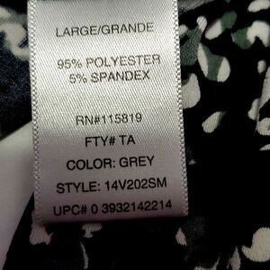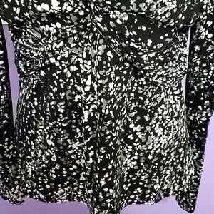 Blavk, white and gray spotted urplice V-neck top. Straight long sleeves. Fitted construction. Thick jersey like material made of 95% polyester and 5% spandex.