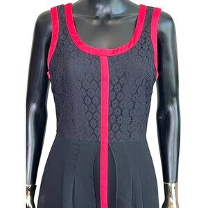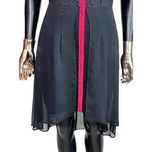 Nicole Miller Black with Pink Trim Chiffon Sleeveless Dress Lace Bodice NWT SZ 8