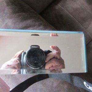 This is a cute box that can be used for most anything. Jewelry, coins, safty pins, pens and pencils, even nail or screw. It has mirrors on all 4 sides. The bottom and inside are tan felt. This is new. #156