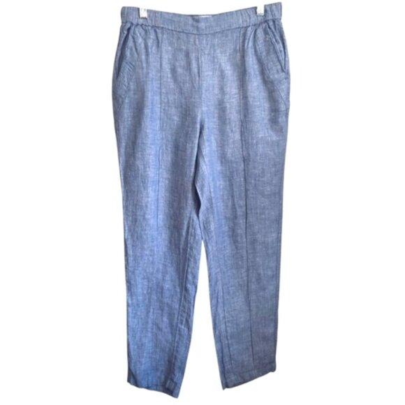 Nicole Miller Blue Linen High Waist Cropped Pants Medium