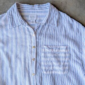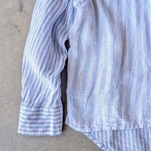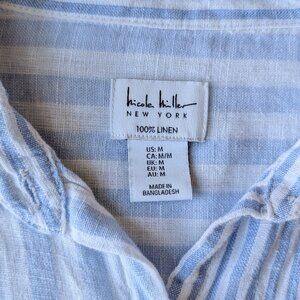 Nicole Miller Blue Mixed Stripe Linen Button Down Shirt medium