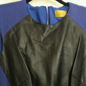 NWT Nicole Miller Blue Sapphire Tina Ponte & Leather Peplum Dress size 0 $345