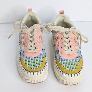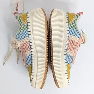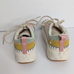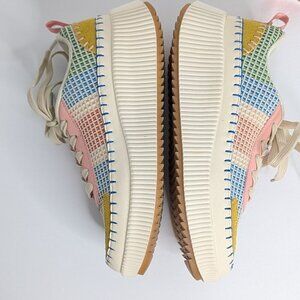 Nicole Miller Brita Mixed Print Woven Platform Lace Up Sneakers NEW