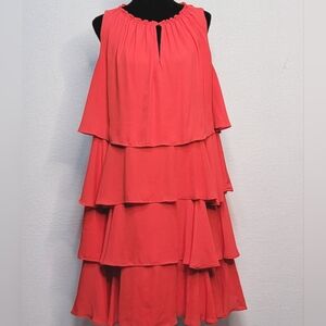 Nicole Miller CORAL Ruffled Tiered Midi Dress#789