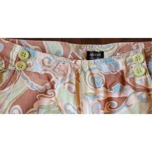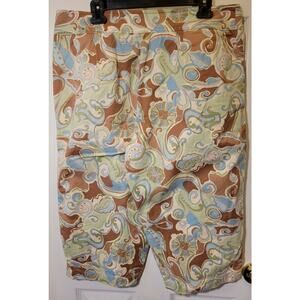 Nicole Miller Capri Pants Paisley Brown Green Cream Button Front Women's Size 18