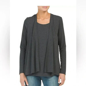 Nicole Miller Cardigan Tank Top Size XS Black Faux Layered Look EUC