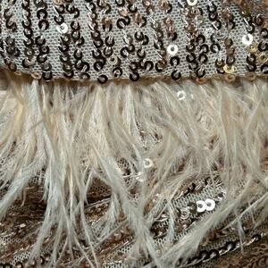 Nicole Miller Charlotte Allover Sequin Feather Trimmed Jacket Size Small Gold