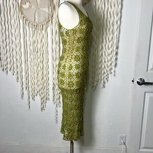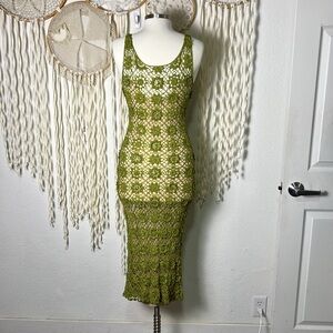 Nicole Miller Collection Crochet Long Midi Dress with Slip in Green Size Small