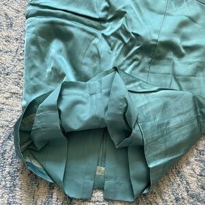 There are no flaws. There is a back zipper. The chest is 28 inches. The waist is 26 inches. The hips are 32 inches. The length is 29 inches. It is fully lined and a silky material.