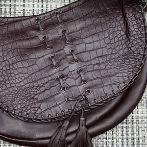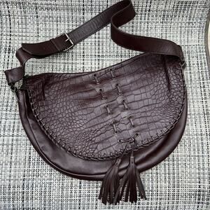 Nicole Miller Collection Brown Leather Saddle Flap Bag - Boho Style