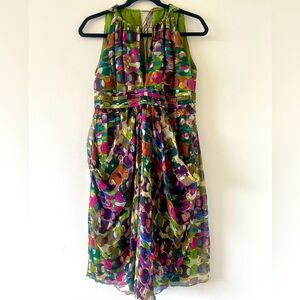 Nicole Miller Collection Multicolor Silk Blend Dress Halter Neck In Size 8