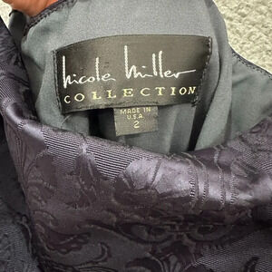 Nicole Miller Collection Pencil Dress Womens 2 Blue Floral Brocade Ruched Event