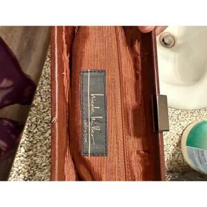 Nicole Miller Collection Vintage Brown Woven Diamond Pattern Envelope Clutch EUC