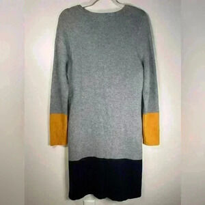 Nicole Miller Colorblock Dress Women’s Size Large. Gray, black and golden yellow. Long sleeves, soft cotton blend, scoop neck. Approximate measurements 40” top of shoulder to hemline, 19” across chest, 27” sleeves. Comfortable, stylish, career, business casual.