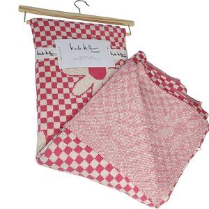 Nicole Miller Home Oversize Decorative Throw Blanket Fuchsia and Cream Flowers Check 100% Cotton 50x70in