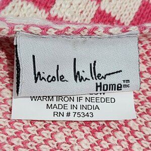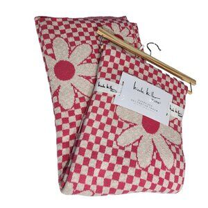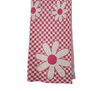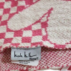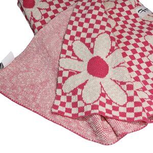 Nicole Miller Home Oversize Decorative Throw Blanket Fuchsia and Cream Flowers Check 100% Cotton 50x70in
