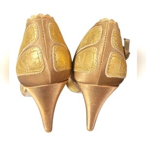 Nicole Miller Couture Formal Holiday Gold Satin Leather Women's Heels 8 1/2B