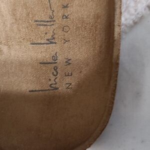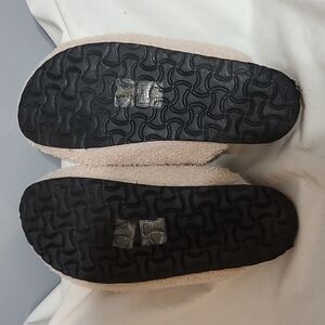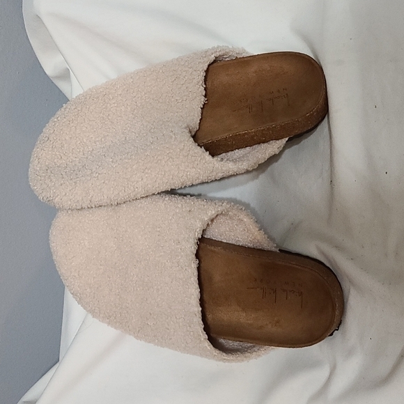 Cozy cream mules with a fuzzy texture. Comfortable slip-on design. Perfect for casual wear.