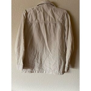 This Nicole Miller utility jacket in a soft cream hue offers a relaxed fit, perfect for layering. Crafted from a natural, textured fabric, it combines casual style with everyday practicality. Its versatile design makes it an essential addition to any wardrobe.