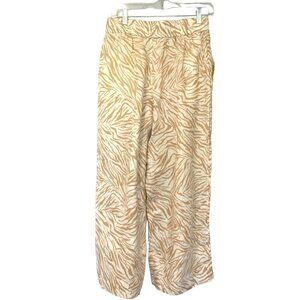 Nicole Miller Cropped Pants 100% Linen Wide Leg Animal Print Women's Sz Medium