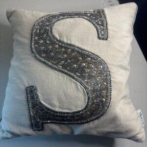 Nicole Miller Decorative Sequined Seed Bead Initial S Throw Pillow 14"x14"