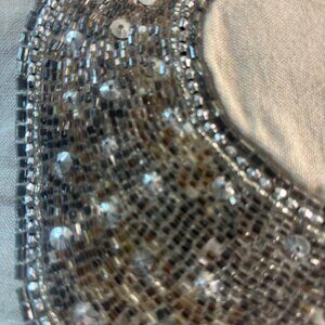 Nicole Miller Sequined Initial S Decorative Pillow Tan, Gray/Clear multi sequins and seed beads, washable zippered removeable cover. 14"x14"