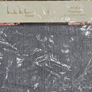 Nicole Miller Denim Blue Prema Chambray Lace Trim Set of 4 Placemats 14" x 19"