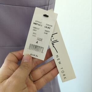 Nicole Miller New York women's dress size 4 style number NM71410 color lilac full length long gown strappy v-neck neckline adjustable straps zipper back fitted flare skirt heavy high quality fabric pit to hem 51 pit to pit 18 flat across waist 15 brand new with tag retail $248 NWT