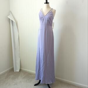 Nicole Miller Dress 4 Purple Lavender Strap Cage V-Neck Formal Maxi Floor Length