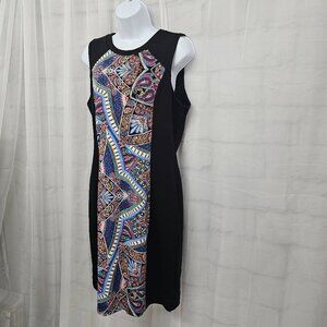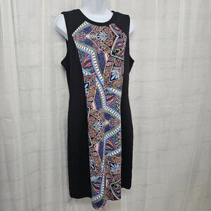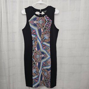Nicole Miller Dress Black Art Deco Sleeveless Sheath Bodycon L NWT