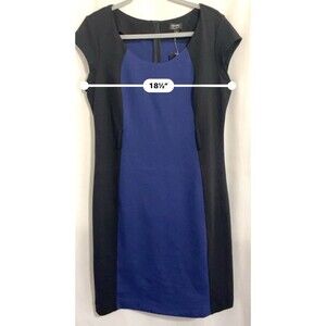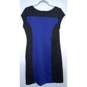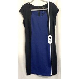 Beautiful Nicole Miller Color Block dress in black and blue. It has cap sleeves, a zip up in back and some stretch. Womens Size Large. New with tags.