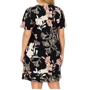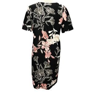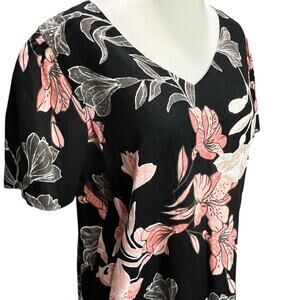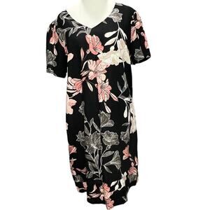 Nicole Miller Dress Womens Size M Black Linen Blend Floral V Neck Soft Summer Boho