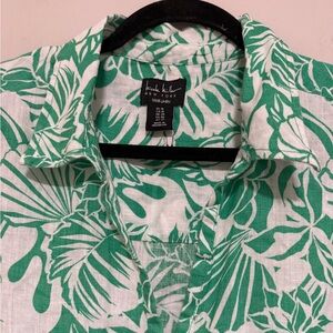 Nicole Miller Floral 100% Linen Popover Tunic Top 1X Cruise Resort Tropical