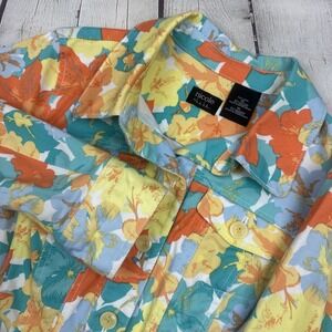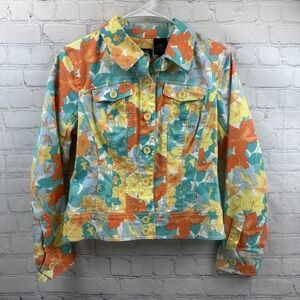 Nicole Miller Floral Button Up Jacket Womens 10 Multi Cotton Denim Long Sleeve