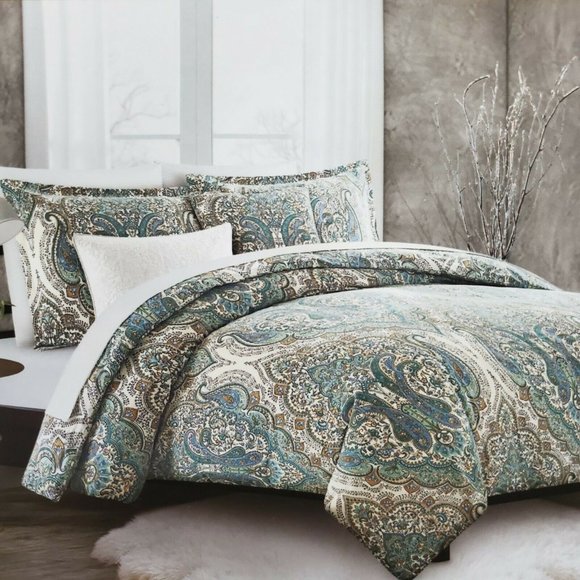 Nicole Miller Floral Medallion Paisley King 3 Piece Duvet Cover Set.
